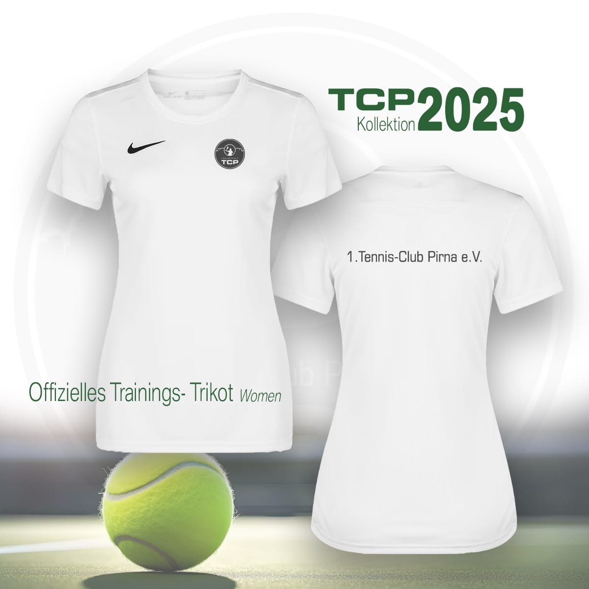 - für Damen: XS (32/34) – XL (48/50), Nike Logo schwarz, TCP Logo schwarz-weiß